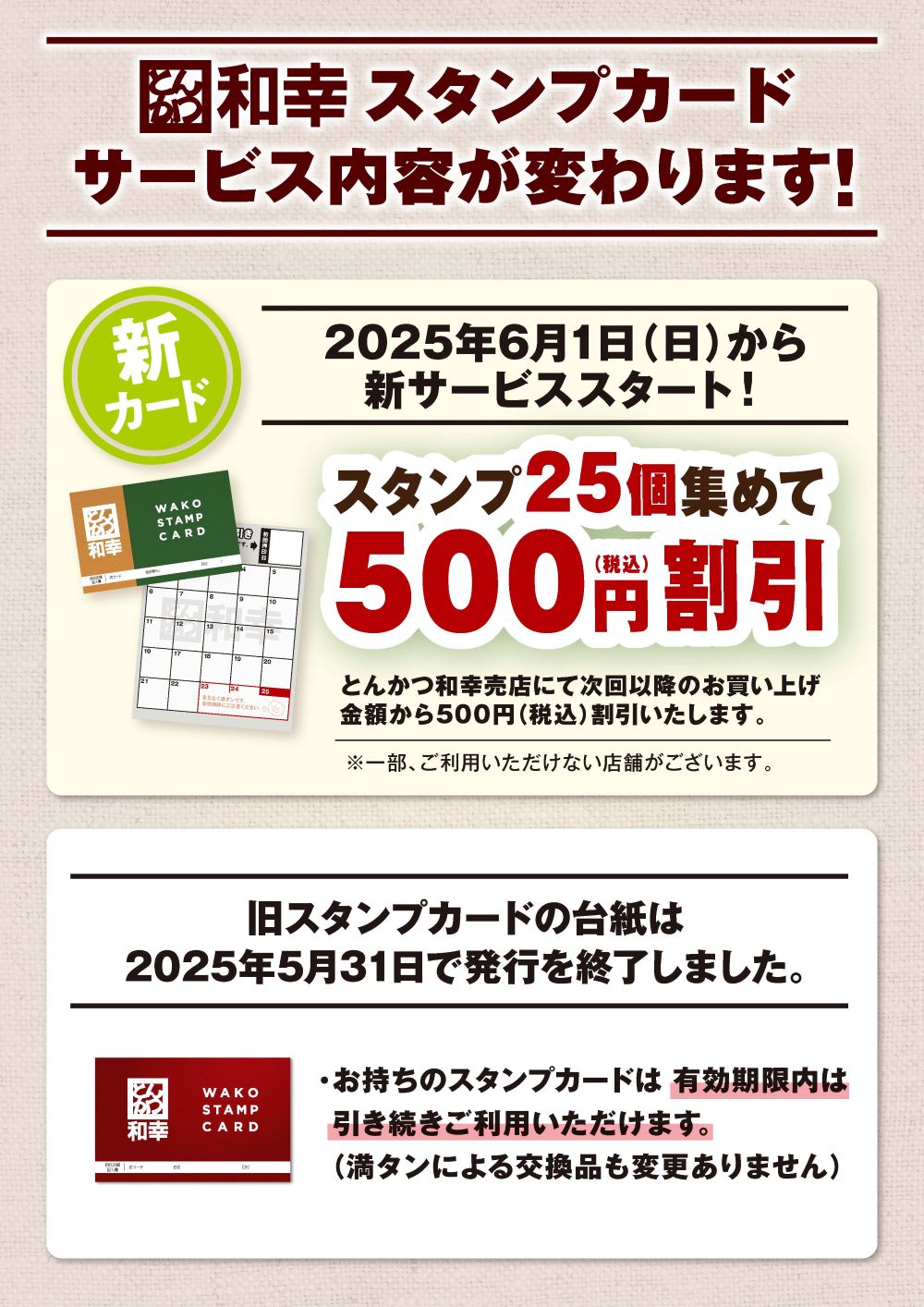 【2025.6.1】【和幸テイクアウト売店】新スタンプカードサービス開始のお知らせ