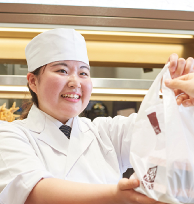普段の仕事では、売る側の立場だけでなく、お客様の立場に立って、「自分がお客様だったらどんな事をしてもらったら嬉しいか」「どんな声をかけてもらったら嬉しいか」という事を常に考えるように意識しています。来て下さったお客様から「ありがとう、美味しかったよ」の言葉をいただくと本当に嬉しいですし、より一層頑張ろうと思えます。これからもこの気持ちを忘れずに、調理・営業技能検定試験の上位合格を目指してスキルアップしていきたいと思っています。