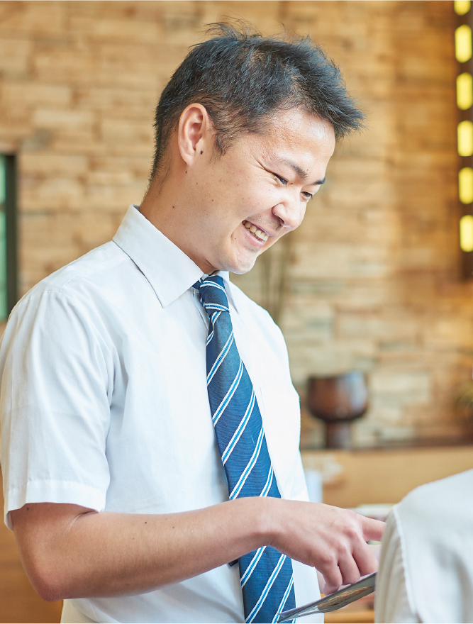 プライベートでも休みがしっかりとれるようになりましたし、結婚して子供が出来て、マイホームも持つ事が出来て、とても充実しています。普段仕事をしている時は、常にお客様に喜んでいただく事を考えて臨んでいます。売店でお客様に商品をお渡しする際、笑顔で「ありがとう」と言っていただいた事やレストランで「美味しかったよ」と言っていただいた時はとてもやりがいを感じます。