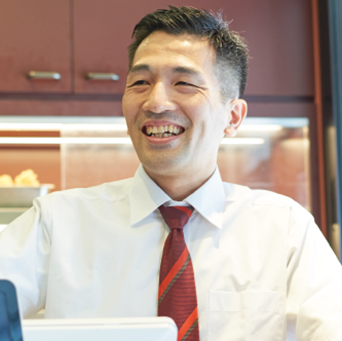 その際、担当する店舗のメンバー全員が明るく楽しく仕事をして、お客様から「ありがとう」「美味しかったよ」とお声掛けいただいた時の最上級の喜びを共有してくれる、そんな姿を見る事が私の喜びです。