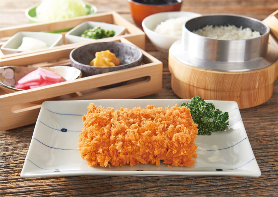 こだわりのとんかつに加えて、釜炊きの炊きたてご飯を一人前ずつ提供し、京都などから取り寄せたお替り自由のお新香が楽しめるなど、日本人の原点とも言えるご飯・味噌汁・お新香には徹底的にこだわっております。ゆったりとしたテーブル席でお食事が楽しめるロードサイド型店舗で、和幸とは一味違うお食事が楽しめるのが「かつ工房和幸」の魅力です。