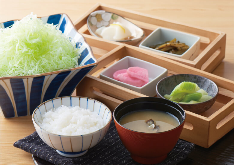 四季折々の旬な野菜を使用したお新香をご用意、お好きなだけお召し上がりいただけます。また、とんかつを美味しくするサイドメニューも充実、濃厚な特製味噌だれやさっぱりとお召し上がりいただける大根おろしなど、いろいろな味をお楽しみいただけます。